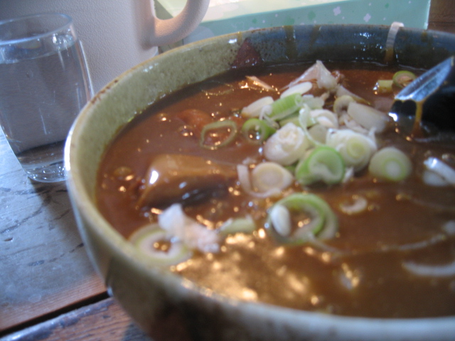 カレーうどんが、洋服に飛ばないかとヒヤヒヤしながら食べました。