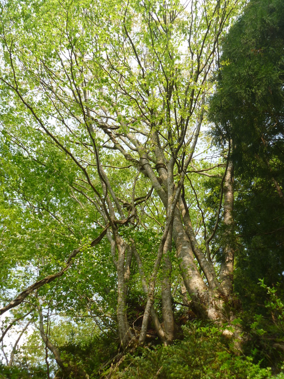 雪の重みでか、木が全部同じ方向に曲がってました。