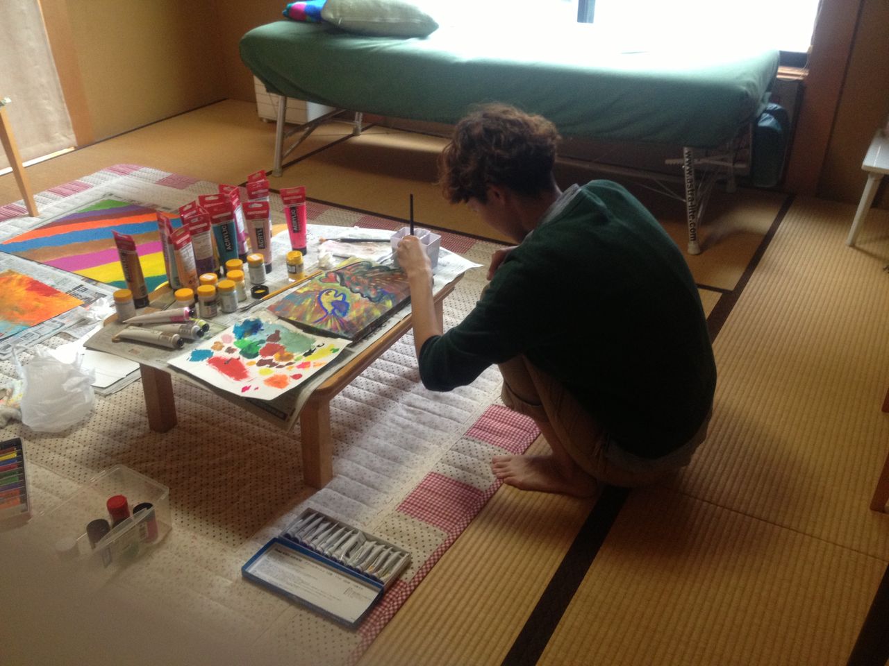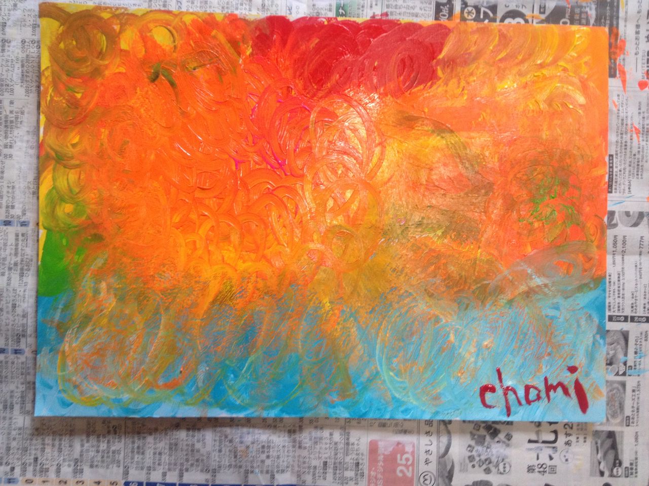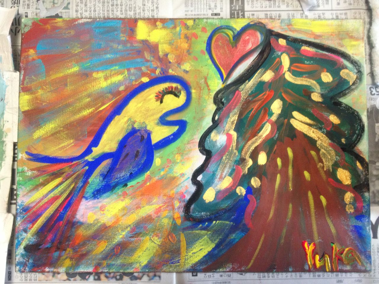 アクリルで一緒に絵を描きました。