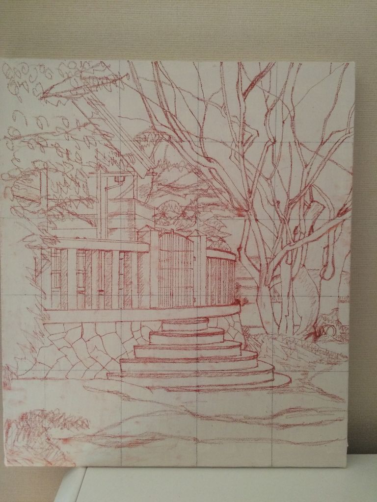 2015年02月05日 油絵 実家の父が3月に東京に出展予定の油絵が出来上がったというのでみてきましたこれは加賀市にある古墳まだ下書きだそうです色をのせていくとかなり絵が動くんだろうな〜。気づけば最近アクリル画を描いてないなぁ〜。またかこっ。。